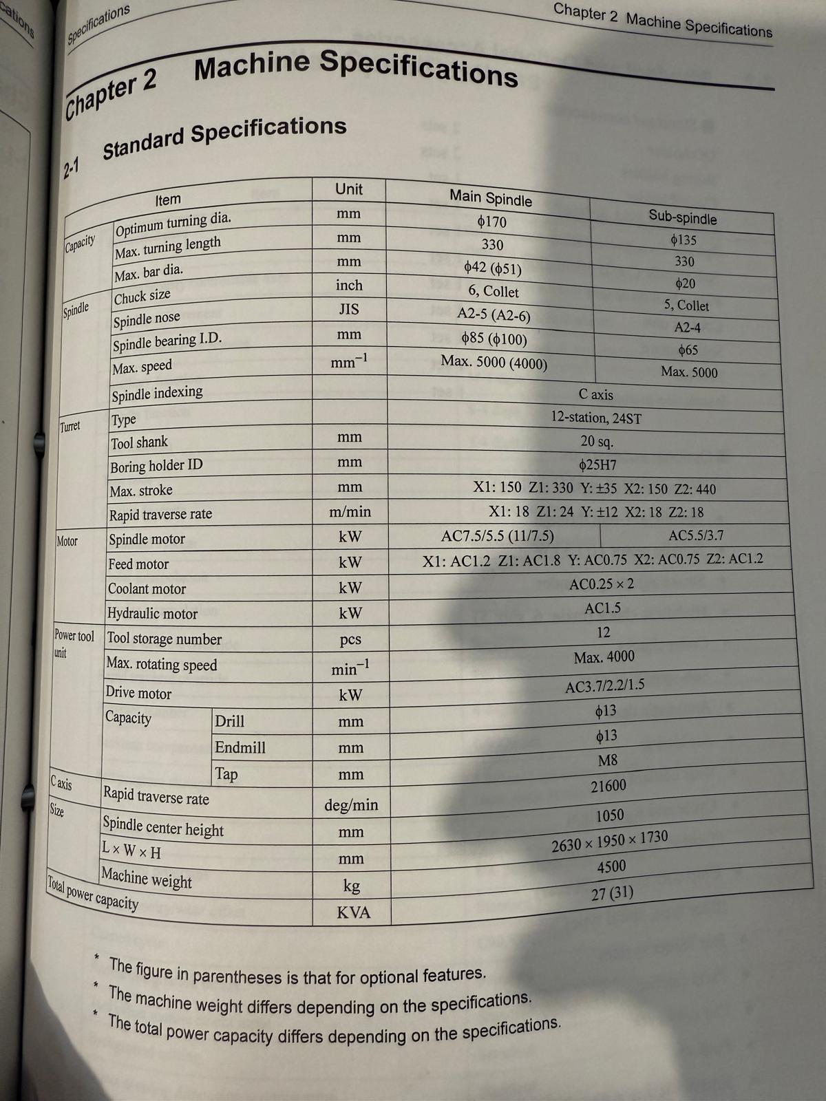 - Maks. Średnica toczenia: Główna 170 mm / pomocniczy 135mm
